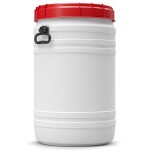Super wijdmonds vat 75 liter wit met rood deksel, met handgrepen