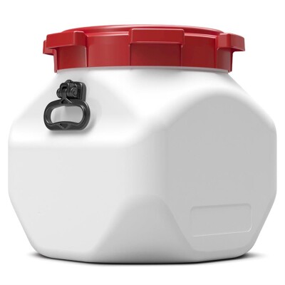 Vierkant vat 40 liter wit met rood deksel, met handgrepen
