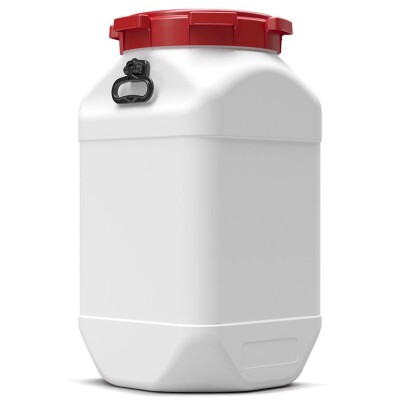 Vierkant vat 80 liter wit met rood deksel, met handgrepen