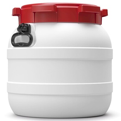 Wijdmonds vat 42 liter wit met rood deksel, met handgrepen