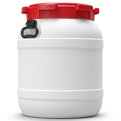 Wijdmonds vat 55 liter wit met rood deksel, met handgrepen